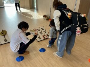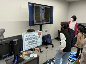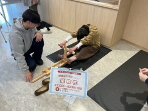 「健康・体力測定」のブースでは、ジャンプ力や反応能力、関節の可動域や柔軟性を測定し、自分の体の状態を楽しくチェックできる企画を行いました 。 また、ミニゲームコーナーでは、モルック、わなげ、カードめくり競争、テニス型のゲーム「テニピン」などを実施しました 。学生たちがルールを教えたり、一緒にプレーしたりすることで、参加者とともに楽しむことができました。